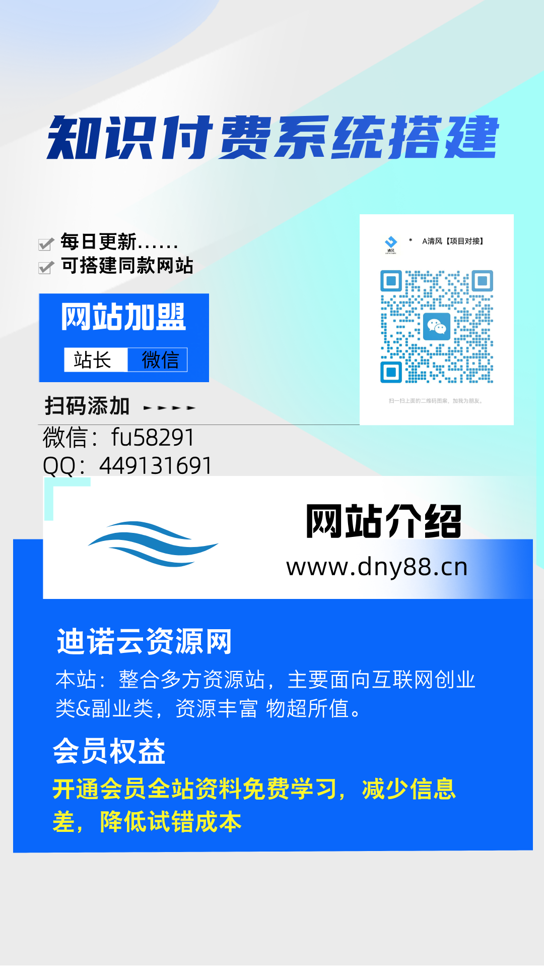 加盟XXX网创,加盟搭建同款知识付费资源网站,实现长期稳定被动收入~